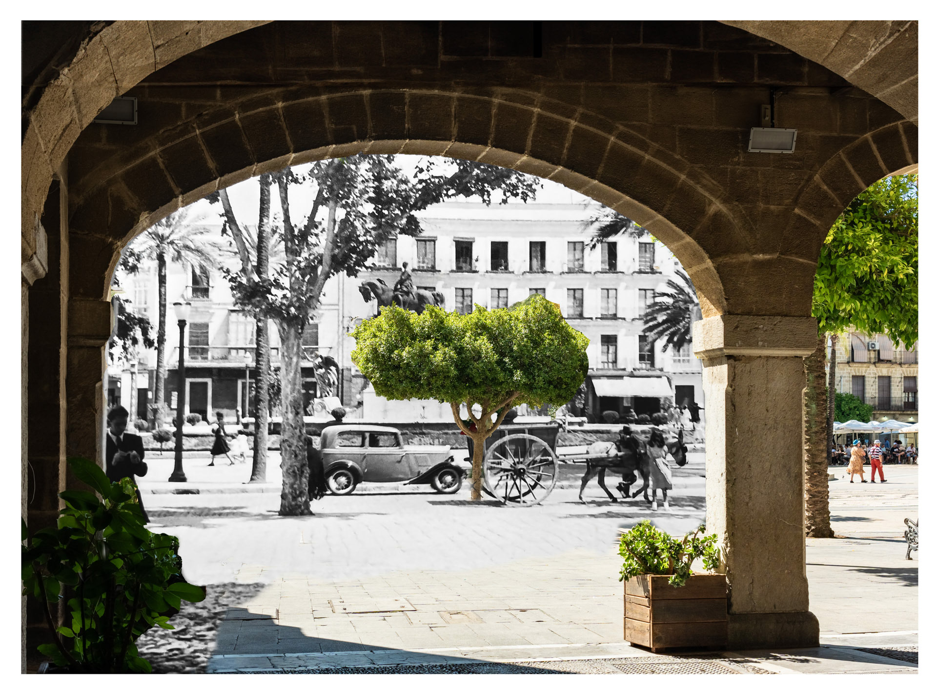 La base de estas fotografías, las antiguas, son de Francisco Mariscal, de su colección "Jerez y el tiempo", son fotos realizadas entre los años 1918 y 1960. Las fotos actuales son de mi autoría y realizadas durante el verano de 2024
